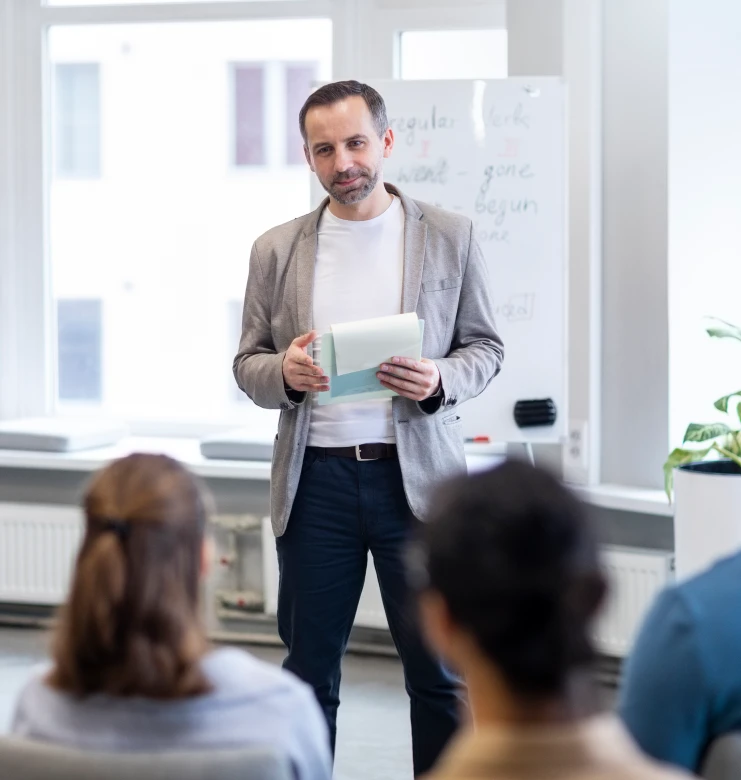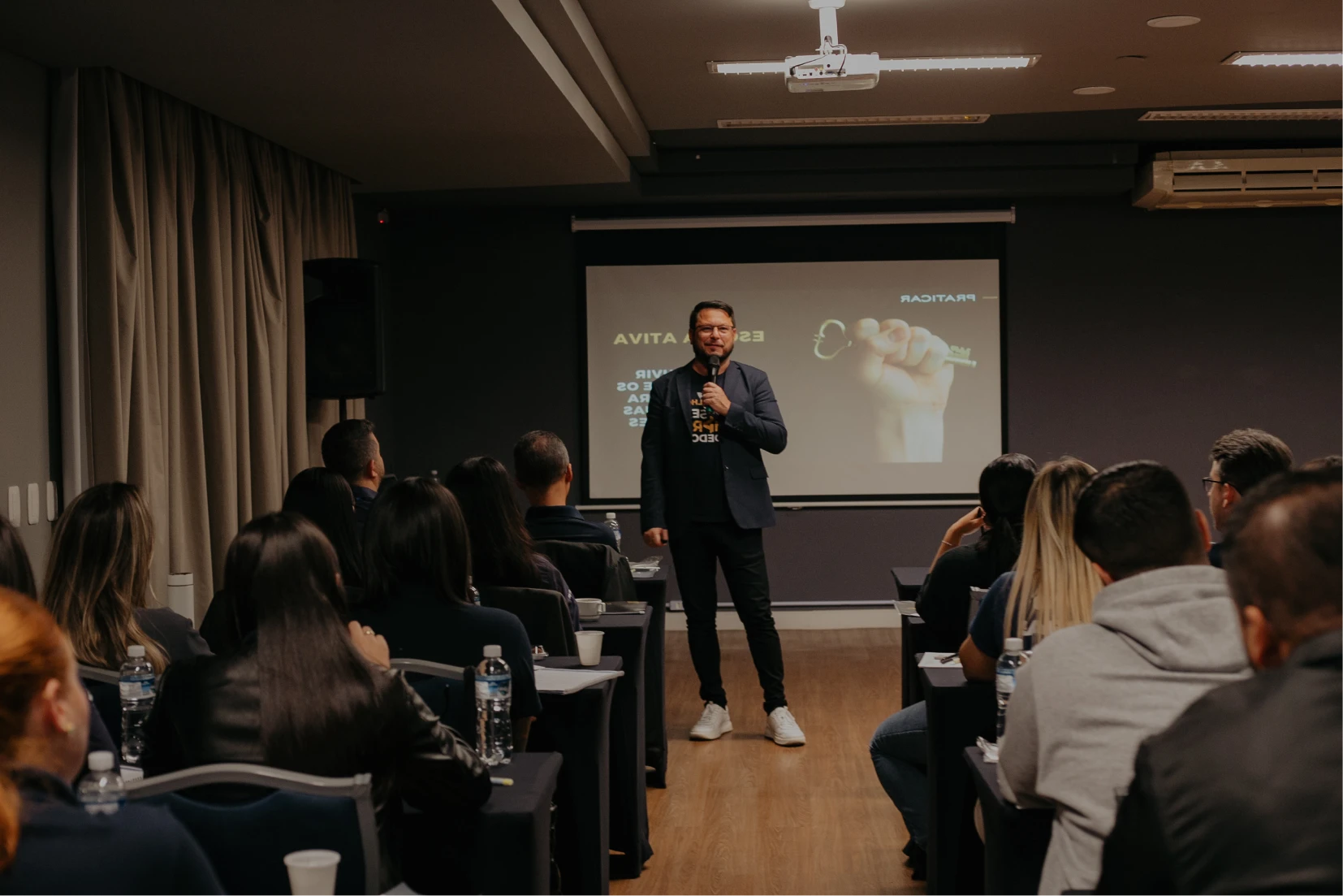 Não é palestra motivacional que empolga por 2 dias. São treinamentos práticos com ferramentas reais e exercícios aplicáveis no dia a dia.